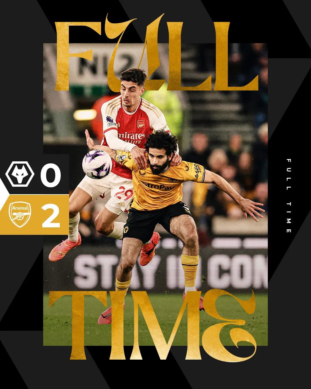 最终,我狼主场0-2不敌阿森纳。