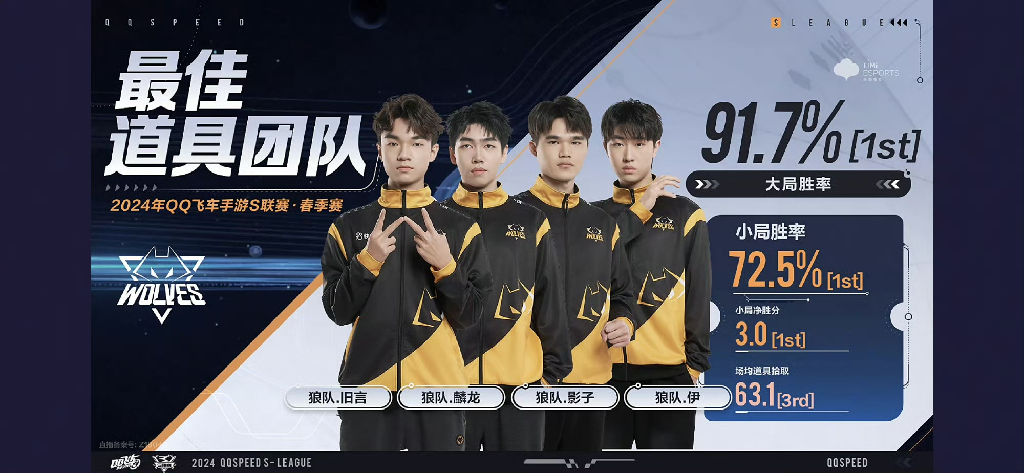 恭喜狼队获得2024QQ飞车手游S联赛春季赛常规赛最佳道具团队奖项!