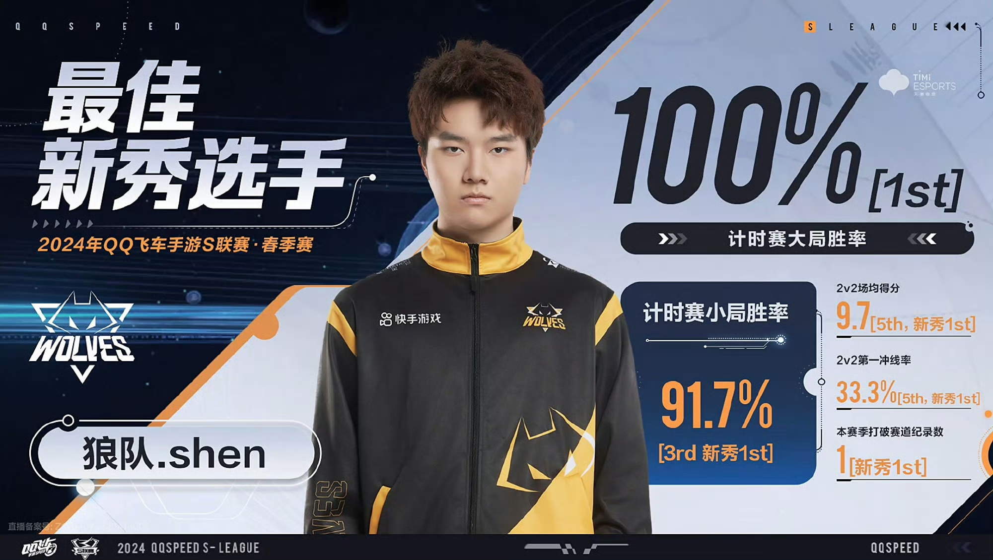恭喜狼队shen获得2024QQ飞车手游S联赛春季赛常规赛最佳新秀选手奖项!