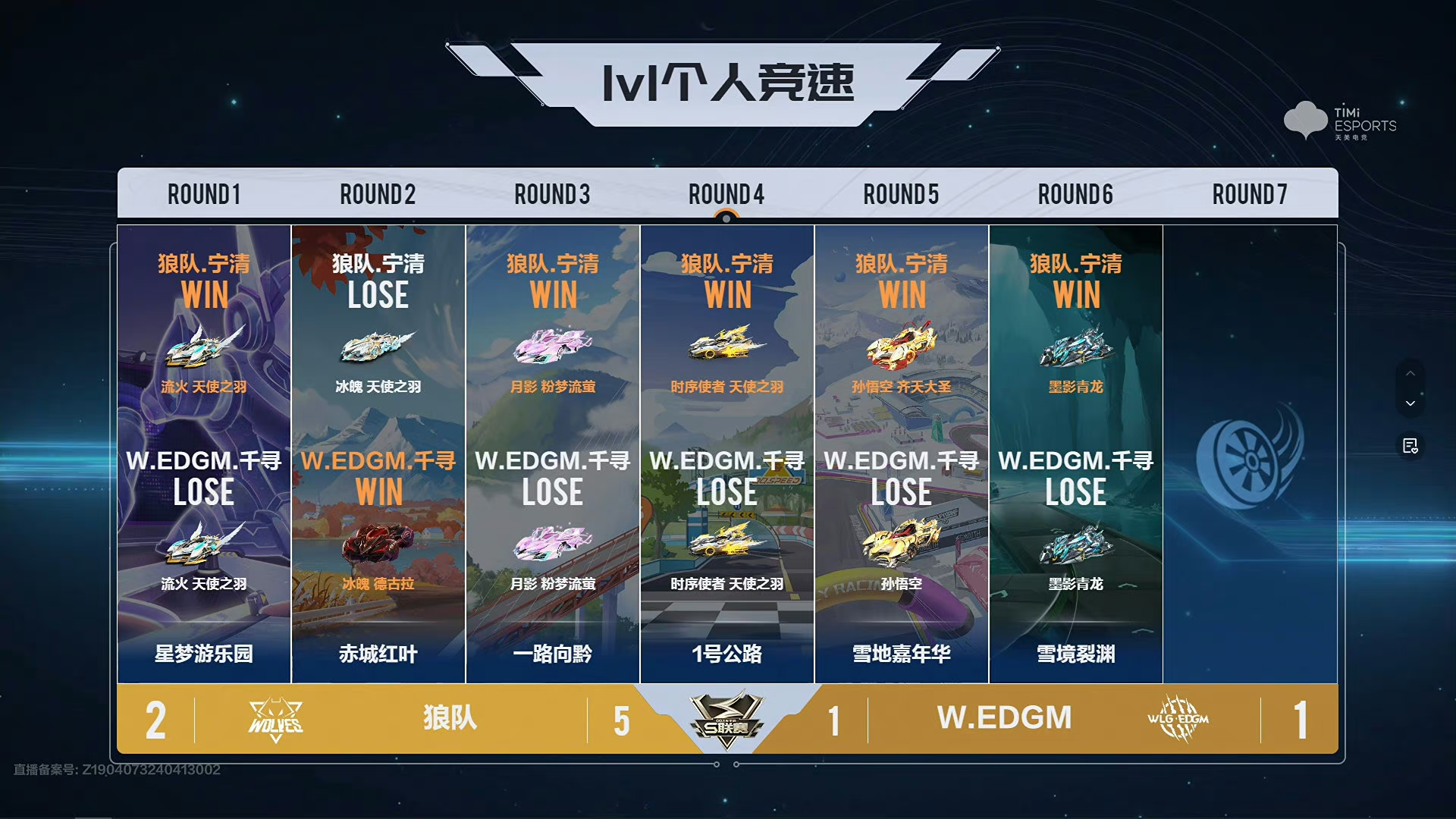 1v1个人竞速赛中 宁清 以5:1战胜对手!