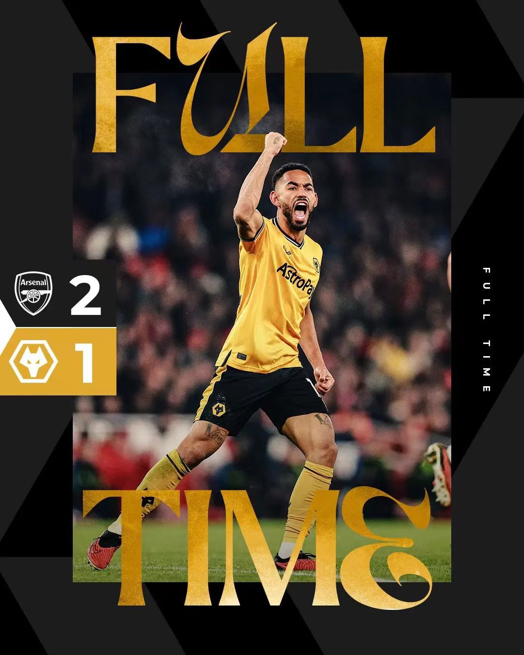 全场比赛结束,我狼在早早落后两球的情况下稳住阵脚,一度看见了扳平的希望,但最后还是功亏一篑,遗憾1-2告负。