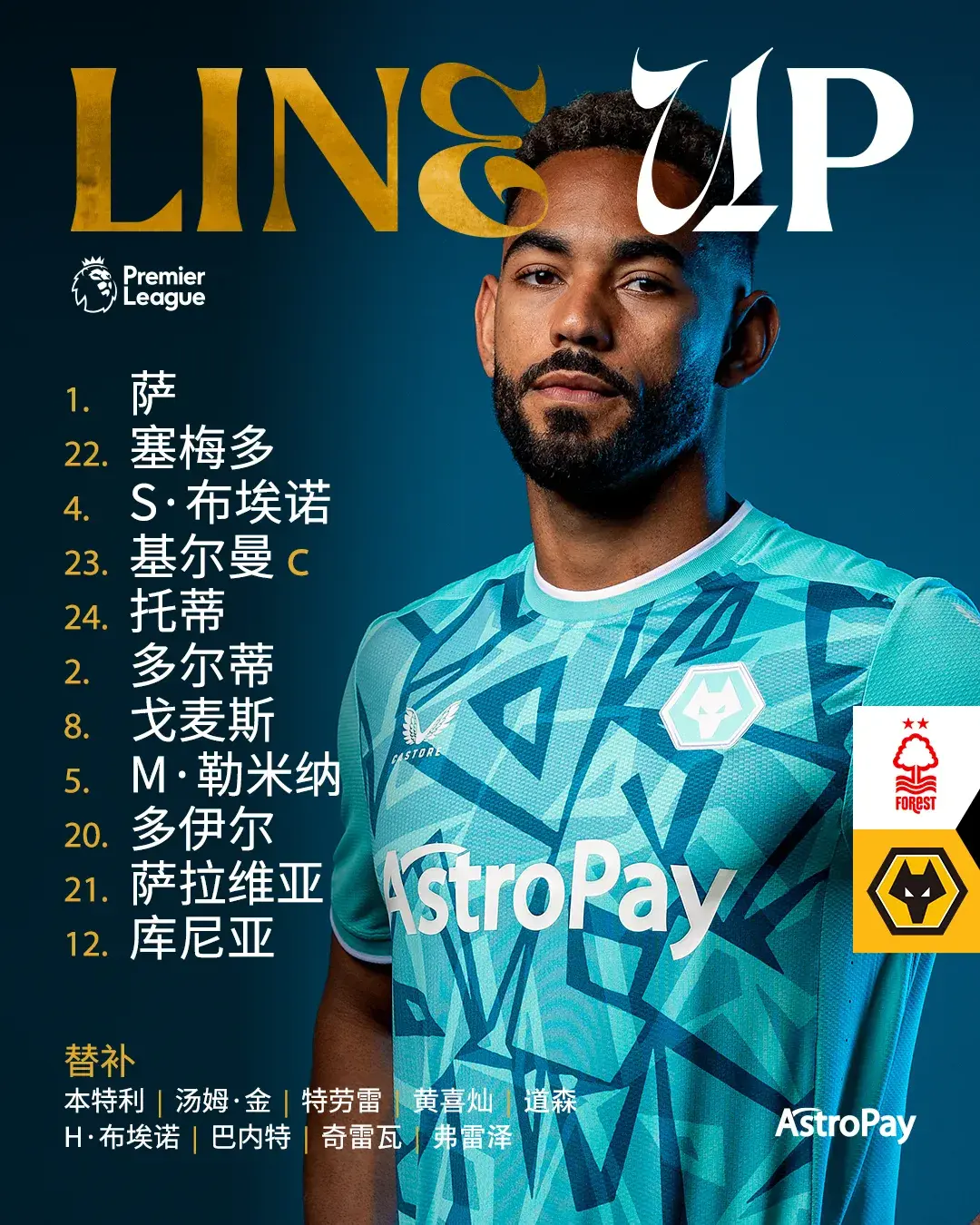 北京时间4月13日22:00,英超第33轮,我狼客场对阵诺丁汉森林。
