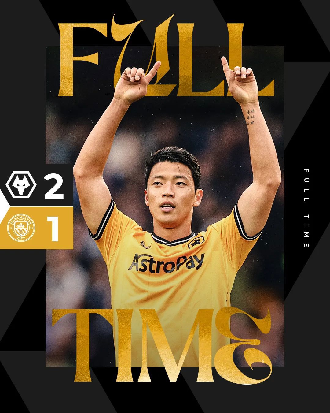 最终,凭借内托制造的乌龙和黄喜灿的进球,我狼在主场2-1掀翻联赛领头羊曼城,送给对手赛季联赛首败!