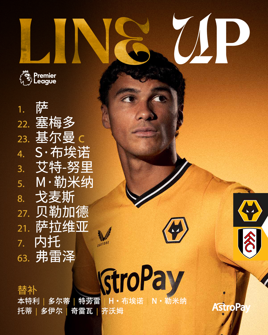 北京时间3月9日23:00,英超第28轮,我狼主场迎战富勒姆。