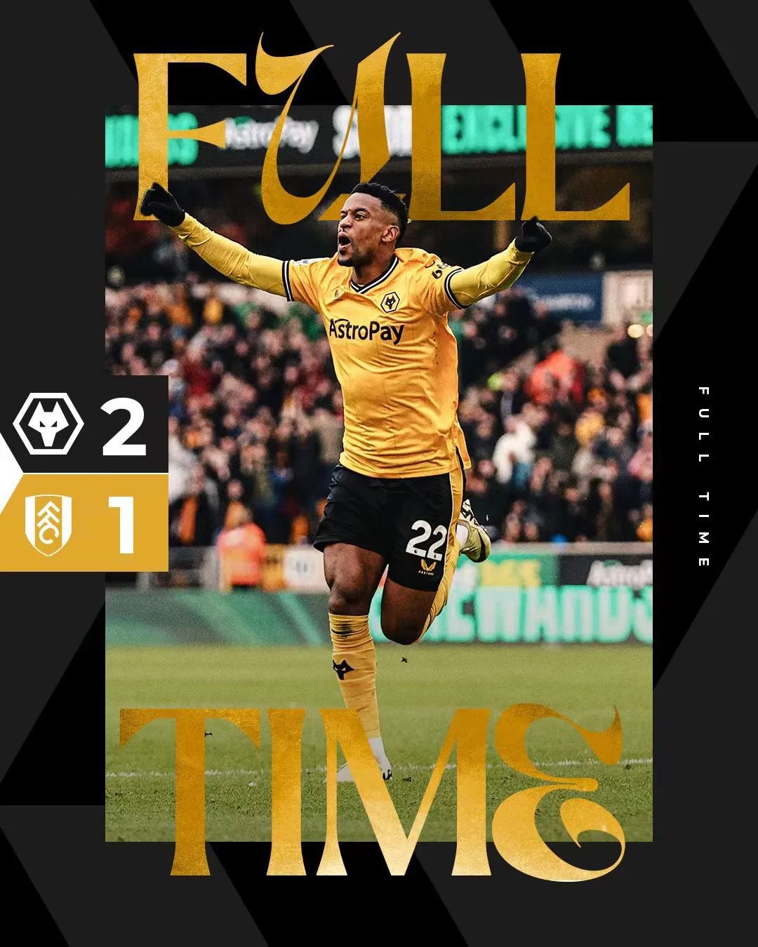 全场比赛结束,我狼在主场依靠艾特-努里和塞梅多的先后建功力克富勒姆!