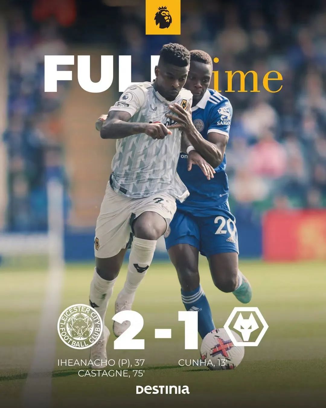 全场比赛结束,我狼1-2不敌莱斯特城。