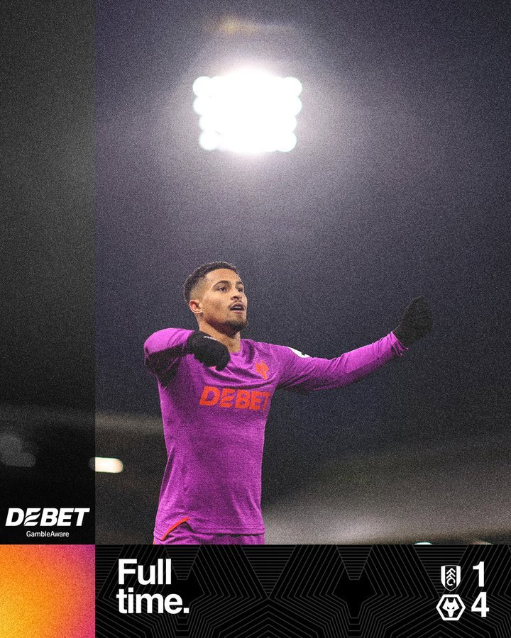 全场比赛结束,在英超联赛第12轮的比赛中,狼队在客场以4-1的比分战胜富勒姆,拿下英超联赛两连胜!