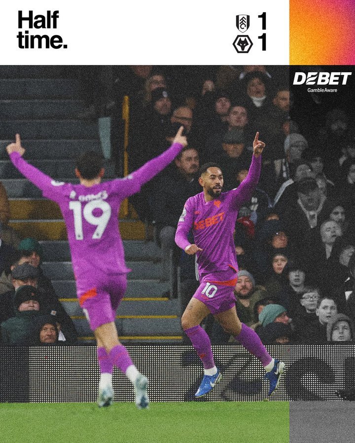 半场结束,在上半场比赛中,凭借着库尼亚的精彩进球,狼队1-1与富勒姆暂时打平。