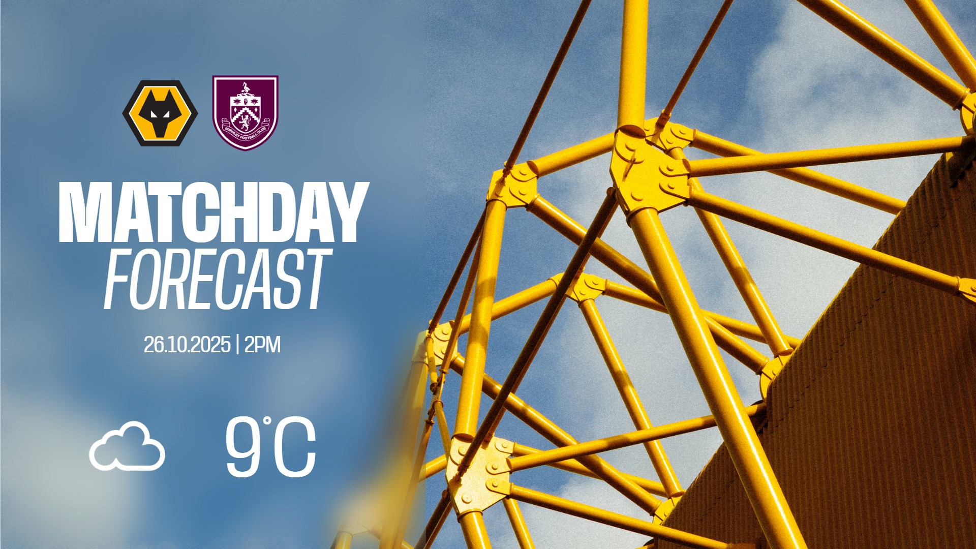 Cloudy weather is forecast at Molineux on Sunday afternoon, with temperatures expected to be around nine degrees Celsius at the time of kick-off.