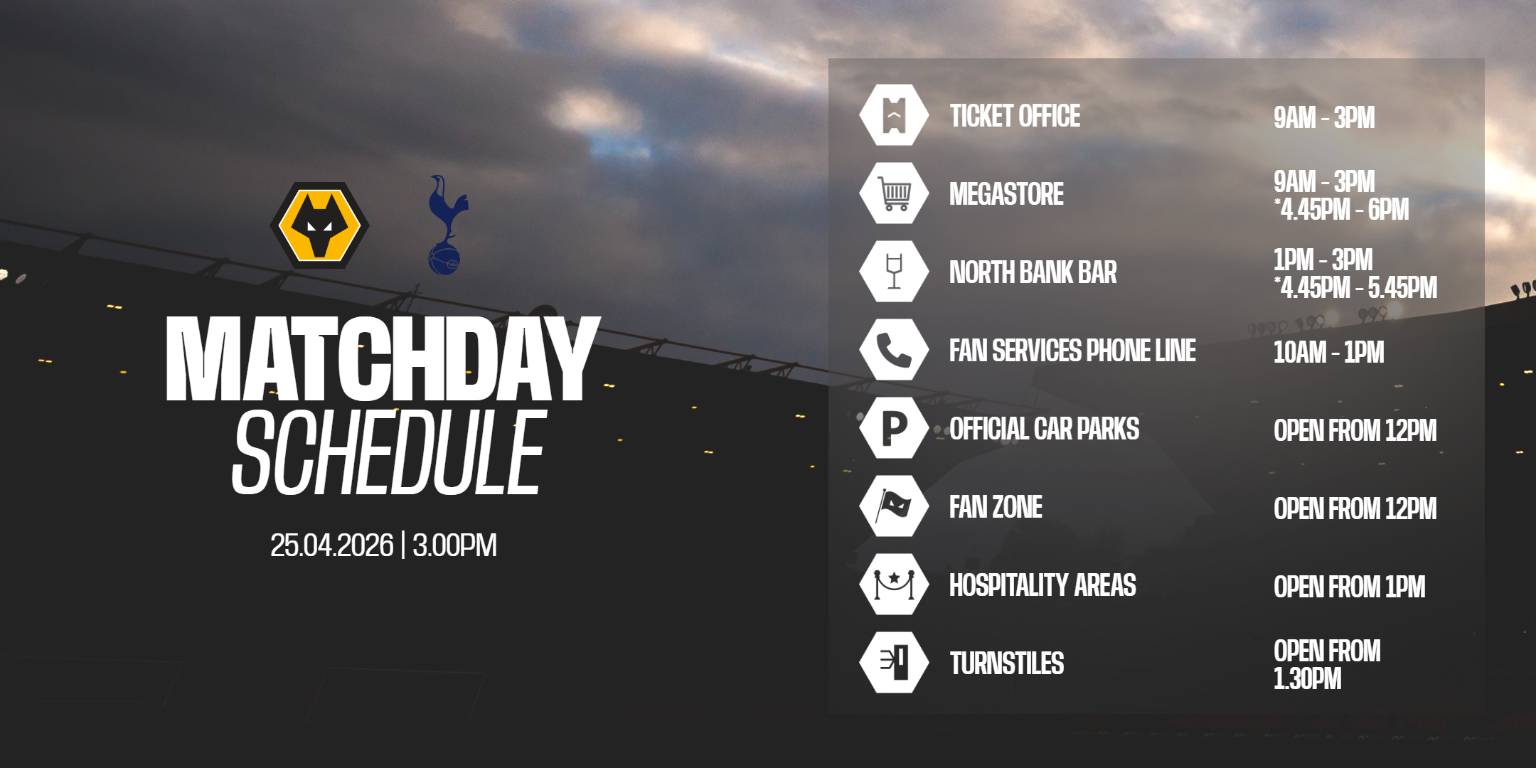 For updates and support, visit x.com/wolveshelp, where DMs will also be monitored up until kick-off.