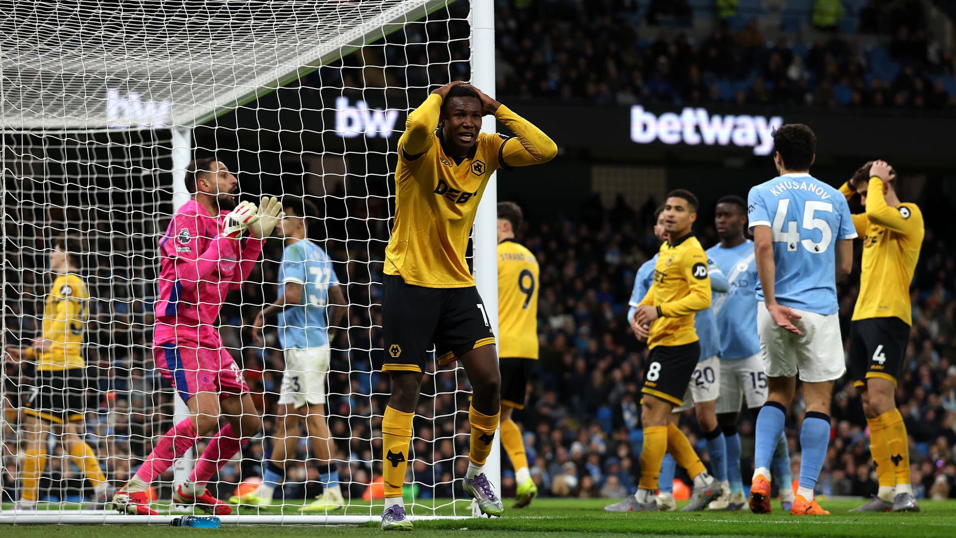 It was Cunha once again who was pushing Wolves forward. Driving from in his own half, he fed substitute Jean-Ricner Bellegarde out wide of the box, but the Frenchman miscued his cross.