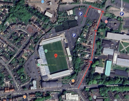 The nearest railway station is in Wellington (TF1 1BY). The station is approximately a 20-minute walk away from the stadium.